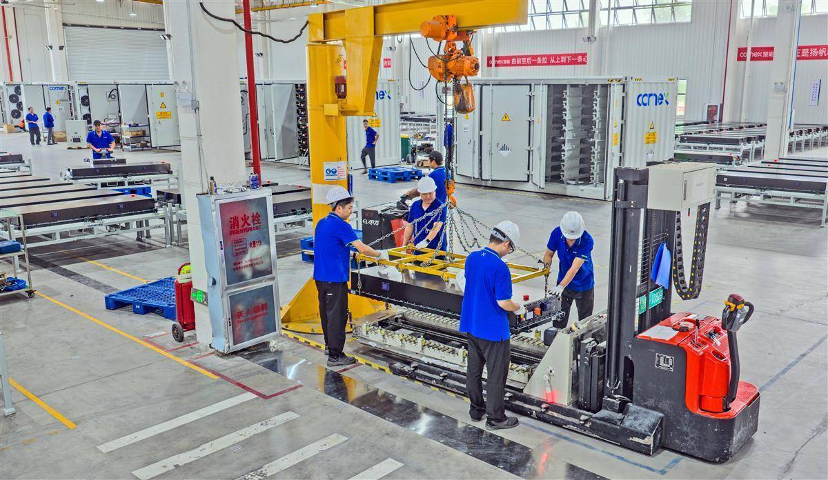 9月22日,位于宜昌市夷陵区楚能新能源宜昌基地一期集装箱车间内,工人正在忙着检验检测刚生产出来5MWh集装箱,据悉这批集装箱是来自保加利亚的206台订单,将用于光伏、风电等新能源储能领域,工厂现在正在以每天6台的速度赶制,这批货物将于10月9日起陆续从宜昌乘船出海发往保加利亚。据悉,得益于高能量密度、高安全性、长循环寿命、低运维成本和低辅助功耗等特点,使得5MWh储能系统在当前海外储能领域具有极高的竞争力。为了确保按时、高质量地完成发货任务,集装箱车间提前制定了详细的生产和发货计划,合理安排人员和设备,从原材料供应到成品组装,从质量检测到运输安排,每一个环节都做到了精益求精。截至目前,楚能新能源2025年新增储能订单已超过60GWh。(湖北日报全媒记者 刘曙松 通讯员 岳黎 摄)